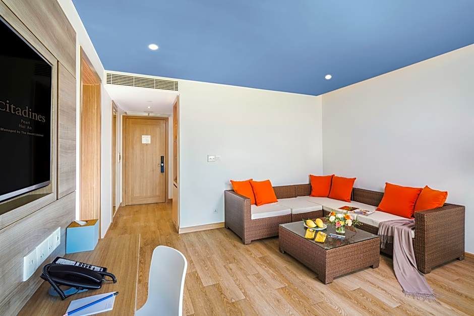Apartment Executive Two Bedrooms is 1668 square feet and includes either a king-size bed 150-183 width or a queen-size bed 150-154 width plus living room, extra beds on demand, satellite tv , and slippers and is Wheelchair-accessible.